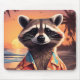 Funny Raccoon mit einem hawaiianischen Shirt an einem schönen Strand.