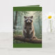 Auf dieser Geburtstagskarte steht ein niedlicher Waschbär im Wald an einem miessigen Morgen. Zwei verschiedene Raccoon-Bilder, eine innen und eine vorne.
