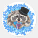Raccoon in einem Hut mit einer Tasse Kaffee Runder Aufkleber