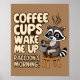 Raccoon lustiger Morgen mit Kaffeetasse Poster
