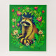 Das Puzzle in einem niedlichen Waschbär liegt inmitten eines Gartens, gerahmt von hellgrünen Blätter, gelben Gängen und rosa Tulpen. Die kühnen Farben und die spielerischen Details verleihen dem Design eine fröhliche und lebendige Atmosphäre, die den Charme der Wälder mit einem Hauch von Gartenfarbe verbindet.