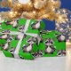 Cute little cartoon Raccoon Pattern Design on a Green background