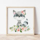 Raccoon, Waldtiere, Boho, rosa Blume Poster