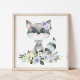 Raccoon, Waldtiere, Boho, violette Blumen Fotodruck