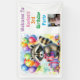 Niedliche Geburtstag-Waschbär mit bunten Ballons in einem Wald. Niedlich für eine Waldkreatur zum Thema Geburtstagsparty. Passen Sie den Text an und fügen Sie das Bild Ihres Kindes in den personalisierenden Bereich ein.