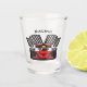 Race Car Design Shot Glass, mit anpassbarem Text.