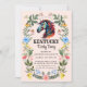 Modernes Race Horse Derby Party Reitsportal Einladung Modernes Pferderennen Derby Party Einladung mit einer Darstellung eines Rennpferdes mit Jockey und gestreiftem Muster auf der Rückseite. Alle Textelemente können so geändert werden, dass sie auch für andere Veranstaltungen genutzt werden können: klassische Reitferien-Einladung, Pferdegeburtstag-Party, Derby-Party, Stallöffnung und vieles mehr. Hintergrund, Farbe der Illustration und Textfarben können mit dem Designwerkzeug geändert werden!