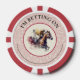 Ein roter Poker-Chip bietet einen Platz, in dem Ihre Gäste schreiben können, wer sie wetten, wird den Derby auf der Vorderseite mit einem Aquarellrennen Pferd und Jockey auf Elfenbeinbild in der Mitte gewinnen. Hinter dem Hotel befindet sich ein Ort, an dem die Gäste ihren Namen und ihren Namen auf der Rückseite in der Mitte schreiben können. PASSENDE Artikel in unserer Sammlung.