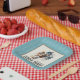 Elegante derby Party Aqua Ränder quadratische Papier Teller mit Racehorsen und Jockeys auf dem Weg zur Ziellinie. PASSENDE Artikel in unserer Sammlung.