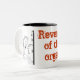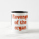 Ein Cartoon (zwei tatsächlich, sodass er auf beiden Seiten der Tasse zeigt) zeigt einen Stopp-Knopf, der aus einer Orgel fällt, während der entsetzte Organist anschaut und trotzdem versucht zu spielen. Die Wörter "Rache des Orgels" sind zwischen den Zeichnungen in blau orange geschrieben. Kann auf farbigen und weißen Tasse verwendet werden.