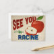 Eine bezaubernde Racine Wisconsin Reisepostkarte mit einem hübschen roten Apfel, zusammen mit lustigen Retro-Text, der sagt: "See you in Racine"