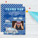 Racing Autos und beenden Racing Fahnen Foto Geburtstag danke Ihnen Karte für Jungs. Das Design hat einen dunkelblauen Hintergrund mit gewaschenen Wasserfarben Streifen. Fügen Sie unsere Nachricht, Name und Foto und machen Sie einen niedliche Geburtstag Dankeschön Karte für die Gäste.