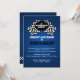 Fertig, fertig, müde! Feiern Sie den Ruhestand mit dieser lustigen Schachspiel-Fahnen-Rennthemeneinladung in blau.