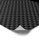 Ein Schachbrettfahnen, das als Chrom-Applikation auf einem Design-Druck im Kohlefaser-Stil dargestellt wird. Die Kohlefaser-Anzug sind Automobil-, modernes und industrielles Geschmack und die 3D-Simulation der Flaggen sorgt für ein dynamisch aussehendes Design.