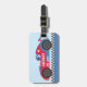Ein Gepäckanhänger mit einer Abbildung eines Rennfahrers in einem blau-roten Rennwagen mit weißen Sternen. Ideal für Kinder und Jungen, die Rennfahrzeuge und Geschwindigkeit Liebe!