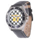 Celebrate a birthday, anniversary, or other special day with this custom racing inspired stainless steel watch. The name and number sits centered in outline text (the red and yellow can be changed to the colors of your choice) on a checkered background. This watch is ideal for racing fans.