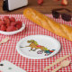 Dieses Design ist ein Rennpferd und Buggy. Das Pferd hat eine Nummer 11. Dieses Rennpferd und das Design der Buggy sehen auf diesem Papier-Teller großartig aus