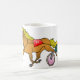 Dieses Design ist ein Rennpferd und Buggy. Das Pferd hat eine Nummer 11. Dieses Rennpferd und das Design der Buggy sehen auf dieser Tasse großartig aus