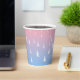 Segelboote in der Ferne auf dem offenen blauen und rosa Meer Regatta bei Sonnenaufgang. Segelyacht gleitet über die Wellen. Regatta Boote auf dem Meer. Segelboote auf einer Segelveranstaltung. Regatta Boot Rennen minimale und abstrakte Design. Segelsport
