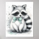 Niedliches Racoon in Schwarz und Weiß mit einer Touch von einer minzgrünen Farbe auf dem Band.