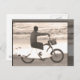 Foto eines Surfers, der sein Rad am Strand entlang reitet