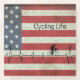 Radfahrer mit dem Hintergrund der amerikanischen Flagge