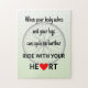 Das Design für dieses Rätsel zeigt die Silhouette eines Fahrrads auf einem hellgrünen Hintergrund. Der Text überlagert es: "Wenn Ihr Körper schmerzt und Ihre Beine nicht weiter radeln können, mit dem Herzen fahren". Es fängt den Moment ein, in dem deine Beine in Qualen sind, dein Körper schreit "Stopp!" aber dein Gehirn sagt "Nein! Das Rennen ist noch nicht vorbei!" Das ist der Moment, tief zu graben und von deinem Herzen zu reiten.
