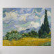Dieses Feld mit Cypressen-Druck ist eines von drei ähnlichen Gemälden von Vincent van Gogh aus dem Jahr 1889. Alle drei wurden im Heiligen-Rémy-Geistesheim gemalt, wo er damals ein Patient war. In einem Brief an seinen Bruder Theo beschrieb Vincent das Gemälde: "Ich habe eine Leinwand von Zypressen mit Weizenohren, ein paar Mohn, einen blauen Himmel wie ein Stück Schott kariert; der erste mit einem dicken Impasto... und das Weizenfeld in der Sonne, das die extreme Hitze darstellt, auch sehr dick."