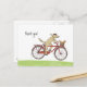 Niedlicher Cartoon Hund trägt einen Beret und Pedal ein rotes Fahrrad. Happy Red Eichhörnchen fährt im Korb. Ein zeichn für Tierfreunde. Diese lustige Postkarte ist individuell anpassbar und eignet sich hervorragend für persönliche oder geschäftliche Mailings. Besuchen Sie Jenns Doodle World für noch humorvollere Illustrationen auf Karten, Postkarten und Geschenken.