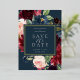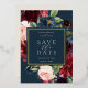 Unsere Hochzeit von Radiant Blom speichert das Datum Ihrer Hochzeit mit einem eleganten quadratischen Rahmen aus üppigem Wasserfarbenfolien und Blume in Rosa, Bordeaux Pflaume und staubblau, mit echter Goldfolie auf einem reichen marineblauen Hintergrund.