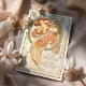Feiern Sie Ihre Hochzeit mit dieser im Jugendstil inspirierten Karte, einem Meisterwerk der Eleganz und der Kunst. Die Vorderseite ist mit einer fesselnden Figur mit fließenden aubralen Haaren versehen, die in pfirsichfarbenen und goldenen Tönen geschmückt ist und von komplexen kreisförmigen Mustern in Blau und Gold umgeben ist. Delikate Blumenmotive und Blattmotive unterstreichen die romantische Atmosphäre, ergänzt durch ein elegantes Drehbuch für das Menü auf der Rückseite. Diese Karte eignet sich ideal für Hochzeiten mit Vintagen, romantischen oder pastellfarbenen Themen und bietet eine bezaubernde Touch für Ihren besonderen Tag. Seine harmonische Farbpalette aus Pfirsich, Gold, Elfenbein und hellblau schafft einen zeitlosen Sake.