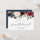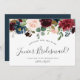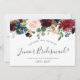Die Brautparty-Karte mit schicker Blumenpracht mit Bordeaux-Marsala, Rosa- und Blütenblumen, üppigem botanischem Grün und üppiger Vegetation. Personalisieren Sie mit Ihrer Junior-Brautjungfrau Anfrage Details (mit "Werden Sie meine jr Bridesmaid? Ich kann nicht sagen, dass ich ohne dich bin"), in der modernen handgeschriebenen Schrift und in der traditionellen serifenlosen Schrift. Einladungen kehren zu reichem Juwel getönt marineblau.
