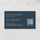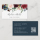 Elegante florale Visitenkarten mit Ihrem Namen und Geschäftsnamen oder Titel in einer schicken Kombination aus Blockschrift und handgeschriebenen Schriftzeichen, ergänzt durch ein üppiges Aquarellbouquet aus Blume und Grünpflanzen im Juwelenton. Fügen Sie Ihre Kontaktinformationen auf der Rückseite in Weiß auf Blau der reichen Marine hinzu, und passen Sie den QR-Code an, damit sich Kunden einfach mit Ihnen verbinden können.