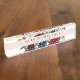 Das elegante Blumenschreibtisch-Namensschild enthält zwei Zeilen Text für Ihren Namen und Titel oder Firmennamen. Die moderne, weiche, schwarze Schrift auf einem rosafarbenen Streifen, umgeben von schmuckfarbenen Blume und botanischem Blattwerk in den Farbtönen Rosa, Bordeaux Pflaume, Marineblau und Grün.