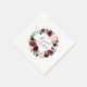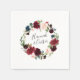 Chic Blumenserien-Servietten sind in handgeschriebenen Schriftzeichen zu finden, umgeben von einem Aquarellkranz in lebhaften Farbtönen wie Bordeaux-Marsala, Rosa und Marineblau mit grünen Blätter und Eukalyptusblättern. Entworfen, um sich mit unserer Radiant Bloom Kollektion abzustimmen.