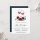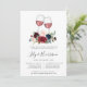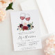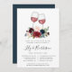 Elegante, blumengeschmückte Einladungen für das Probe- oder Weinabendessen mit zwei Gläsern Rotwein, die mit Aquarellfarben-Blume in reichen Schmucktönen verziert sind und zu unserer Radiant Bloom Kollektion passen. Personalisieren Sie Ihre Dinner-Details mit Ihrer Probe in einem schicken Mix aus Block-, Serif- und Kalligraphie-Schriften. Umfasst Platz sowohl für die Hochzeitszeremonie Probe und Abendessen oder Feiern.