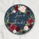 Beenden Sie Ihre Gastgeschenke Hochzeiten mit diesen eleganten Blumenmarken. "Liebe und Dank" erscheint in handgeschriebenen Schriftzeichen, umgeben von einem Kranz üppiger Blume und Blätter in Juwelentönen in Bordeaux-Marsala, Rosa, Marineblau und Eukalyptus-Grün auf einem reichen marinebasierten Hintergrund. Fügen Sie auf der Rückseite Ihre Namen und Ihr Hochzeitstermin hinzu. Koordiniert mit unserer Hochzeitskollektion Radiant Bloom.