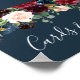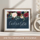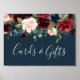 Dieses elegante botanische Schild, das auf unsere Hochzeitskollektion Radiant Bloom abgestimmt ist, lasse den Gästen zu wissen, wo sie ihre Karten und Geschenke ablegen können. Personalisieren Sie sich mit einer Textzeile in kalligrafischer Schriftzeichen (mit "Karten & Geschenke" gezeigt), gerahmt von schmuckfarbenen Aquarellfarben-Blume und grünem Blattwerk auf einem reichhaltigen marineblauen Hintergrund.