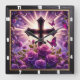 Diese faszinierende quadratische Wanduhr besticht durch ein silbernes Kreuz, das von lebhaften lila und rosa Lichtstrahlen umgeben ist. Lila Rose blühen an ihrer Basis, während zartes Rosa und lila Schmetterlinge herumfluteten und ein mystisches und spirituell bezauberndes Display schaffen. Dieses Design verbindet den Glauben wunderbar mit einer Touch von Fantasie.