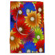 Eine kühne und fröhliche Geschenktasche, die mit gigantischen Gänsebläschen in brillanten Rot, Orangen, Blues, Purpur und Grüntönen explodiert. Das Blumenmuster wird mit goldener Naht umrissen, um einen bestickten Look zu erhalten, der auffällig und festlich ist. Ideal für Geburtstage, Frühlingssommer oder wann immer Ihr Geschenk im Stil lauter ankommt als eine Marschband. Starke Griffe verleihen dem Aufruhr der Farbe praktische Bedeutung.
