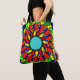 Diese lebendige mandalafarbene Tasche Bas mit ihren komplexen, symmetrischen Farbmustern. Das Design strahlt Energie aus mit lebhaften Farbtönen von Grün, Blau, Rot, Orange und Gelb, wodurch eine harmonische Mischung entsteht, die das Auge zeichne und dieses Stück zu einer perfekten Ergänzung zu jedem Outfit macht.