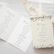Dieses strahlende, mehrfarbige Hochzeitsprogramm ist perfekt für eine rustikale Hochzeit. Die Einrichtung besteht aus rosa, lila, rot, gelben, marineblauen, grünen Blätter und Wiesenwild-Blume, die in einem nahtlosen und reizvollen Blumenstrauß zusammengesetzt sind, der an natürliche Schönheit erinnert. Geben Sie ein Angebot oder eine kurze Nachricht, die Reihenfolge des Dienstes, Hochzeitsfeier und Dankeschön Nachricht.