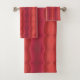Badetuch Set 3 dekorative Badezimmerausstattung und Zuhause-Dekoraccessoires, bedruckt mit Radiant Reds Carnival Funhouse Distorted Mirror abstrakt Art Design Wiederholen Muster Original-Kunstvorlage von TheFabricSeal Print on Demand Shop unter Zazzle.com #ZazzleMade https://www.zazzle.com/store/thefabricseal TheFabricSeal ©️ Original. Moderne klassische zeitgenössische Kunst, künstlerisch entworfen und gedruckt für Ihre Zuhause- und Wohnaccessoires, Wohngestaltung, Modeerklärungen, modernes elektronisches Accessoire und Geschenktöne. Dieses wunderschöne feminine Retro-Pop Mitte des Jahrhunderts stilvolle abstrakte geometrische wiederholen gemusterte Design bietet viele Farbmischungen von Rot einschließlich Ziegelstein, Terrakotta, Französisch Rosa, französische Rose, Punch, Rouge, Korallen, Hibiskus, Maulbeere und Cerise. Perfekte Farbkombination für das ganze Jahr und vor allem während der Saison Frühling und Sommer.