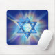 Stern von David mit dem hebräischen Letter Shin in der Mitte mit bunten Lichtstrahlen von hinten.