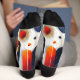 Feiern Sie die festliche Jahreszeit mit diesen strahlenden Weihnachtssocken der Sternexplosion, die ein abstraktes Design von goldenen Sternexplosionen und fett rot-blau-gradienten auf einem sauberen, weißen Hintergrund. Ideal, um einen einzigartigen, modernen Flair zu Ihrem Urlaubsschrank oder als nachdenkliches Weihnachtsgeschenk hinzuzufügen.