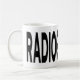 Coffee mug displays typography featuring the word RADIOGRAPHER in bold black lettering. A gift for radiographers, x ray technologists, and radiography students who take pride in the profession.
