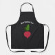 Eine schwarze Schürze mit einer Abbildung eines Radieschens und einem anpassbaren Text oben. Es könnte ein nettes Geschenk für einen Koch sein oder einfach nur zum Spaß tragen! Sie können es auch als Geschenk an ein Kind, einen Bauer oder einen Veggie!