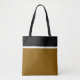 Dieses elegante Design zeichnet sich durch einen breiten schwarzen Oberstreifen aus, der in Weiß umrissen ist, oberhalb eines goldbraunen Farbblocks, der den Rest des Designs ausfüllt.