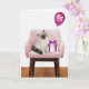 Niedliche Lumpenkatze mit einem Geschenk und rosa Party Ballon für 85. Geburtstag Nummer auf dem Ballon kann geändert werden.