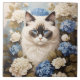 Ragdoll Katze mit Blue Hydrangea-Blume Fliese